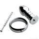 Measurements: Cock ring measures 2 inches internal diameter. Urethral plug measures 4.75 inches in length, .15 inches in diameter. Anal plug measures 4 inches in length, 1.5 inches at widest point.